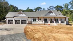 This elegant custom-built home blends modern comfort with timeless Southern design. The exterior showcases a beautiful mix of board and batten siding, stone accents, and warm wood details, creating an inviting and enduring first impression.